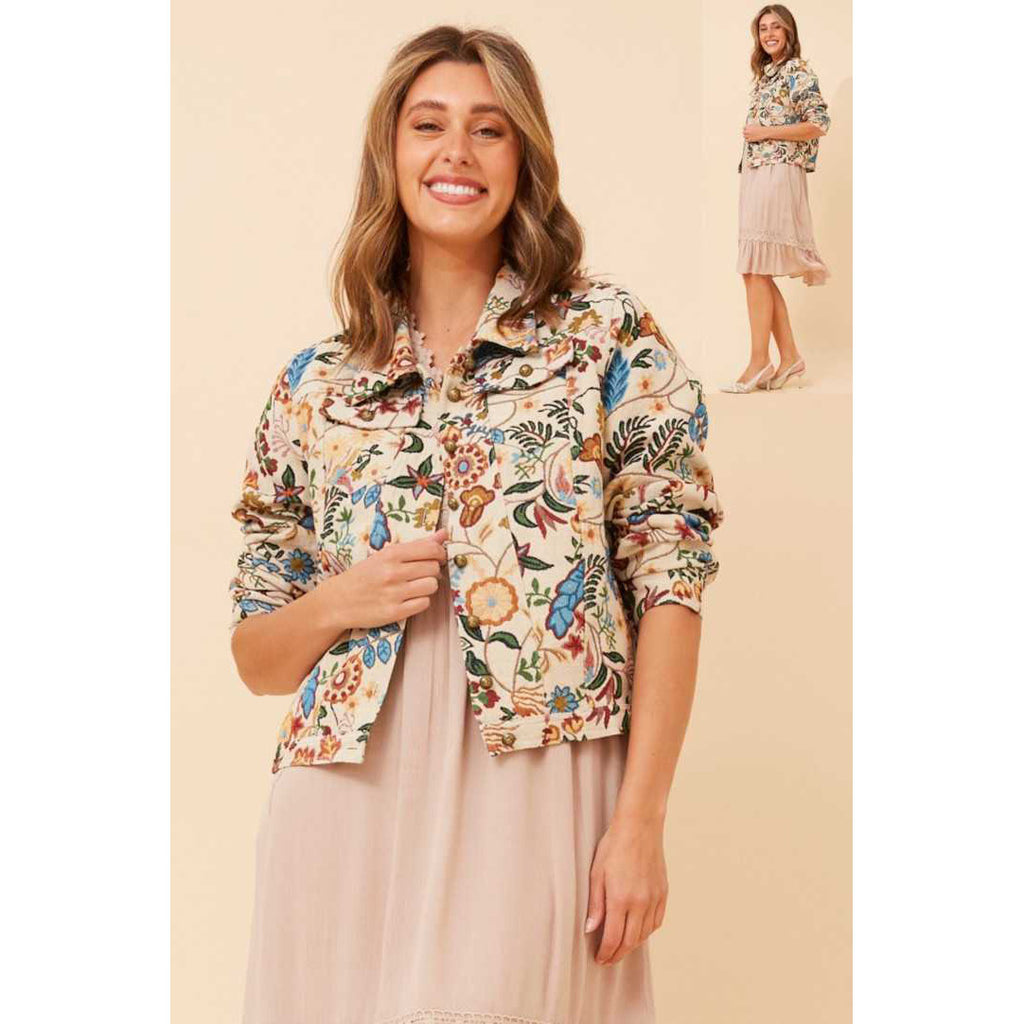 Make a statement with this charming cropped jacket that brings instant personality to any outfit. Featuring an eye-catching all-over print, it's the perfect layering piece for those who love colour and pattern. The cropped silhouette flatters beautifully while the cream base keeps things fresh and versatile. Throw it over dresses, tees, or tank tops for effortless style that works from brunch to night out. A playful wardrobe essential that proves jackets don't have to be boring.