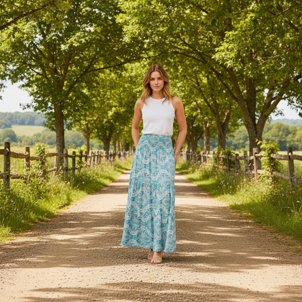 Shirred Waist Maxi Skirt - Turquoise