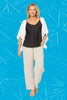Elevate your wardrobe with this refined bolero, crafted from a luxurious blend of 90% cotton and 10% linen. The natural fibre composition offers breathable comfort with subtle texture, while the white provides versatile styling possibilities. Perfect for layering over dresses or pairing with tailored pieces, this sophisticated piece transitions effortlessly from day to evening wear. The linen addition ensures a graceful drape and gentle movement, making it an essential addition to any discerning wardrobe.