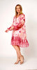 Knee Length Long Sleeve Shirt Dress - Multi Pink Floral