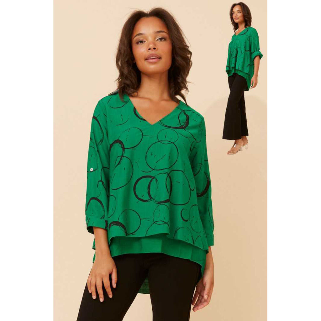 Effortlessly chic and endlessly versatile, this jade layered blouse brings dimension to your everyday wardrobe. The 3/4 sleeves strike the perfect balance between polished and relaxed, while the layered design adds visual interest and texture. Whether you're dressing it up for the office or down for weekend brunch, this timeless piece transitions seamlessly through your week. The soft jade hue complements all skin tones and pairs beautifully with everything from tailored trousers to your favourite denim.