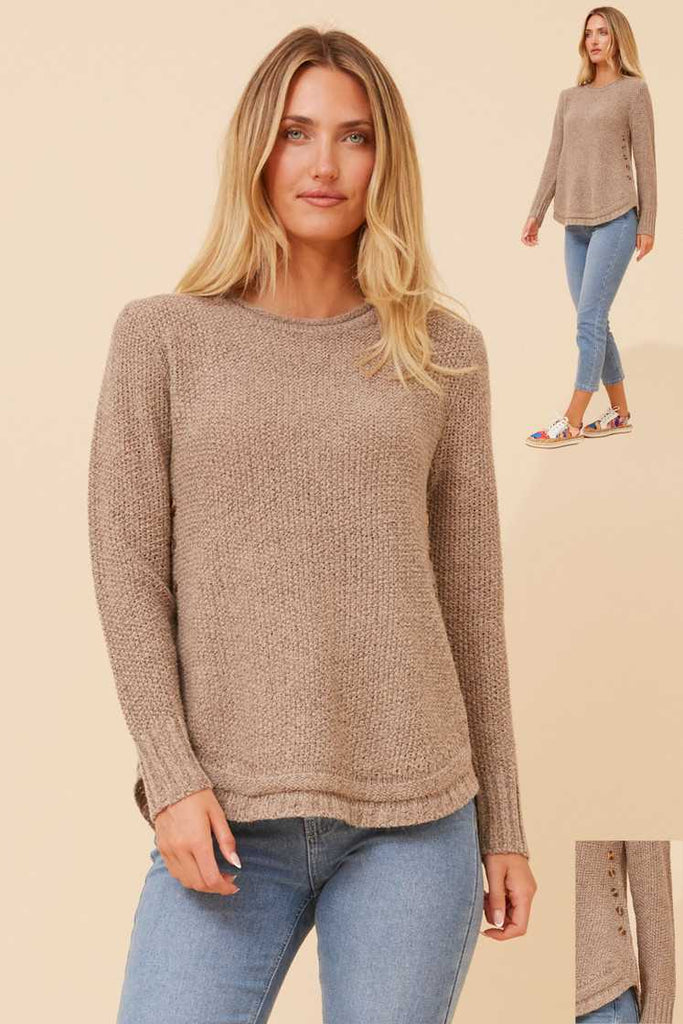 Pull en tricot à manches longues et détails boutonnés - Noir