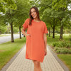 Short Sleeve Cotton Dress With Pockets - Orange