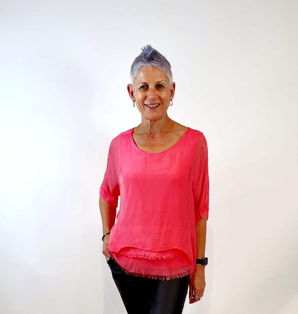 Notre haut en mélange de soie à trois épaisseurs et à bords bruts - Blanc est fabriqué à partir d'un mélange luxueux de soie et de coton avec une finition élégante à bords bruts. Portez-le avec votre jean préféré pour un look intemporel et élégant.