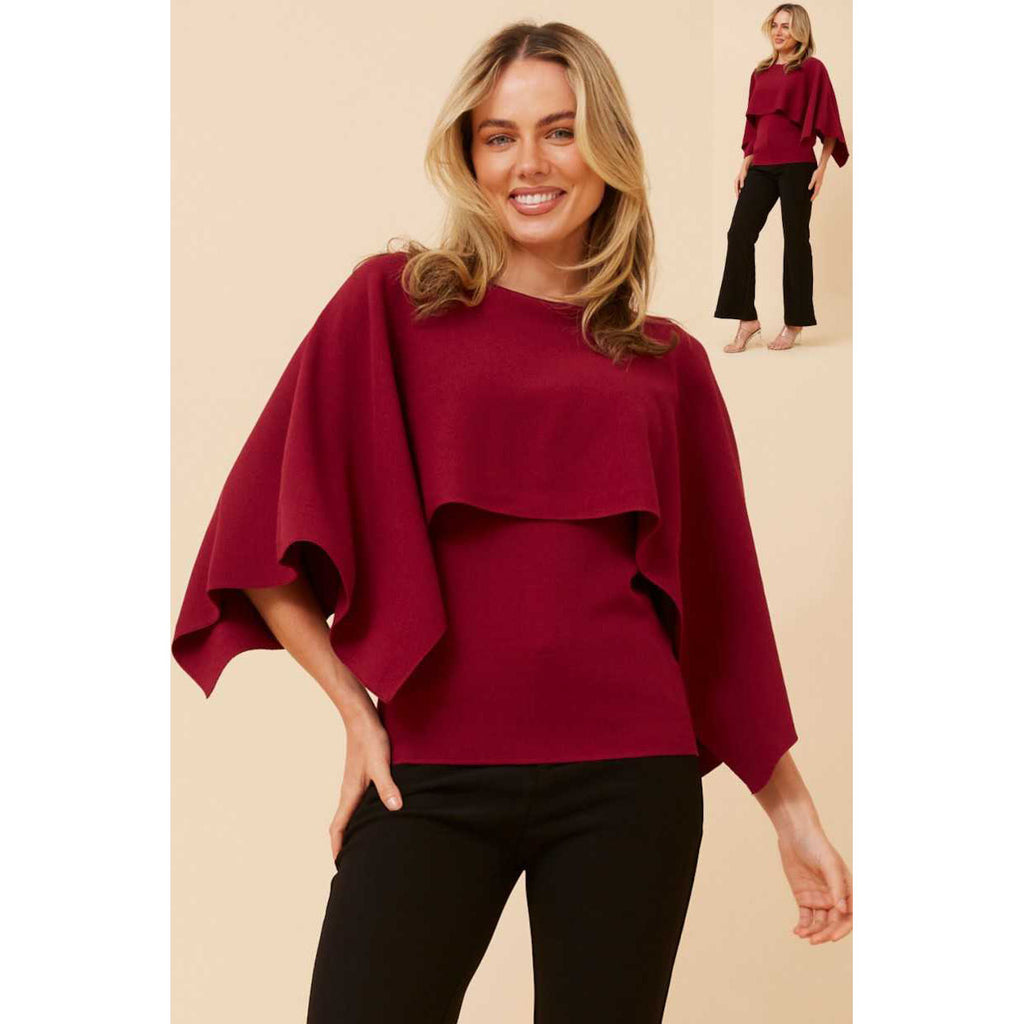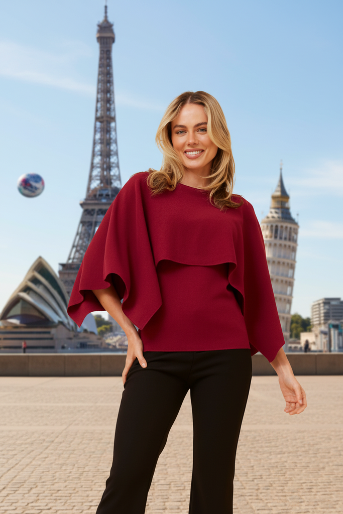 Sleek and versatile, this fitted top features a striking overlay design that adds dimension and visual interest. The tailored fit flatters your silhouette while the layered detail creates a modern, fashion-forward look. Perfect for dressing up or down, pair it with your favourite jeans or trousers for effortless style. The rich red hue makes a bold statement that works beautifully across seasons.