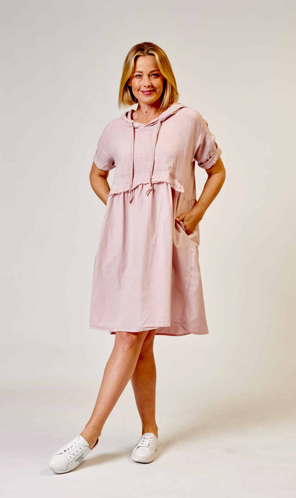 Throw on this effortless hooded dress and embrace pure comfort meets style. Crafted from a breathable blend of 100% linen and 100% cotton, it's your go-to piece for lazy days and casual adventures. The cosy hood adds a playful touch, while the relaxed fit keeps you feeling breezy and unrestricted. Rosa's soft, neutral tone pairs with everything in your wardrobe. Perfect for those moments when you want to look put-together without trying too hard.