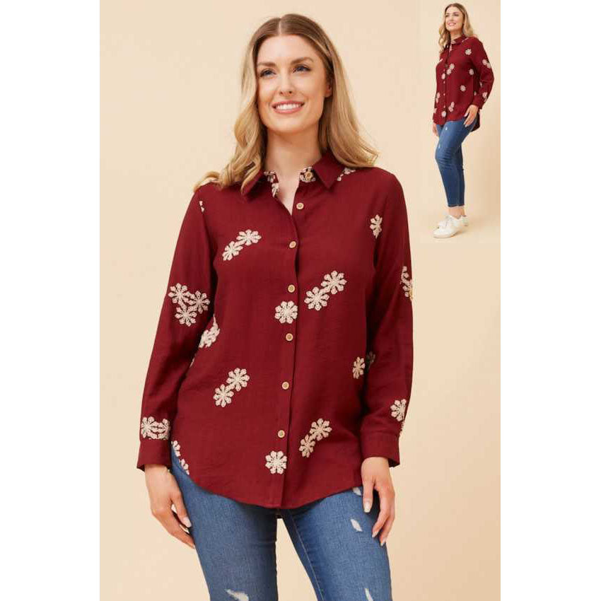 Elevate your everyday wardrobe with this refined long sleeve button-through shirt in striking red. Crafted from a luxurious viscose-nylon blend, the fabric drapes beautifully while maintaining its shape, offering both comfort and elegance. The classic button-front design provides versatile styling options—wear it polished over a slip dress, or layer it effortlessly for cooler days. Perfect for transitioning from office to evening, this timeless piece is an essential addition to any sophisticated closet.