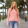 long Sleeve Textured pearl Detail Pullover - Dusty pink
