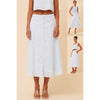 Elevate your wardrobe with this refined midi skirt in a serene sky blue. The classic button-front design adds timeless elegance and practical styling versatility. Cut to a flattering midi length, it pairs effortlessly with a matching top for a coordinated, polished look. Perfect for both professional settings and sophisticated casual occasions, this piece delivers understated luxury with every wear.