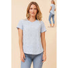 Elevate your everyday wardrobe with this refined short sleeve tee in a sophisticated blue hue. Crafted for versatility, it pairs effortlessly with tailored trousers, denim, or layered pieces for a polished look. The classic silhouette and quality construction make it an essential staple that transcends seasons and trends. Perfect for both casual outings and smart-casual occasions.